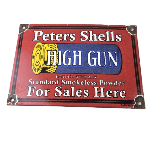 Vintage Peters Shells Sign – Firearm Shotguns Porcelain Gas Ammunition Sign