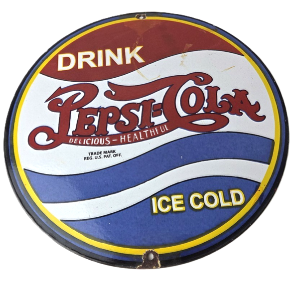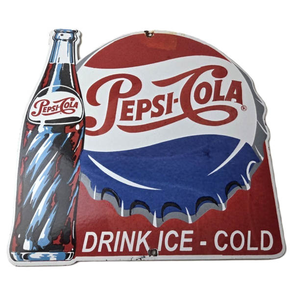 Vintage Pepsi Porcelain Sign – Ice Cold Beverage Drink Cola Gas Service Sign