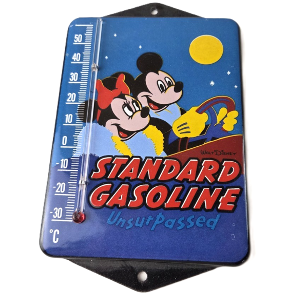 Vintage Mickey Porcelain Sign – Standard Gasoline Pump Ad Sign On Thermometer