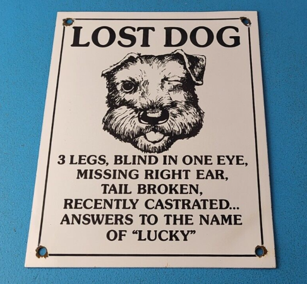 Vintage Lost Dog Porcelain Sign – Wanted Notice Missing Gas Pump Plate Sign