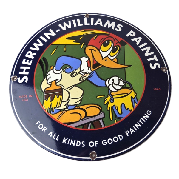 Vintage Sherwin Williams Sign – Paint Brush Painting Porcelain Gas Oil Pump Sign