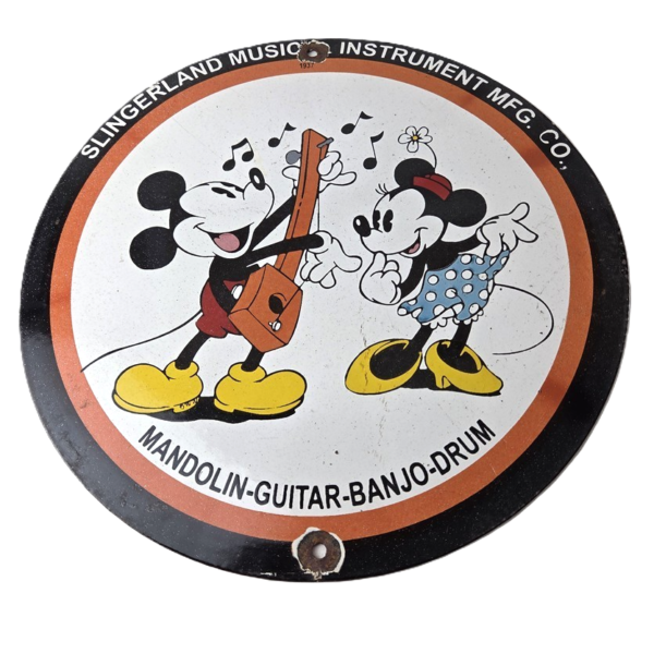 Vintage Slingerland Music Sign – Drums Guitar Disney Mickey Gas Pump Ad Sign
