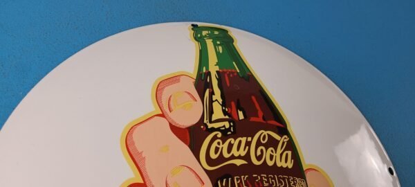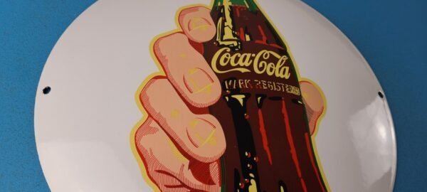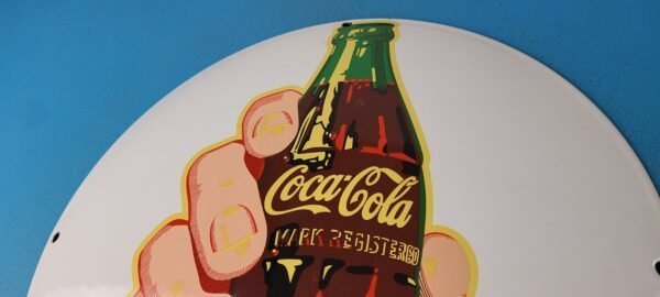 Coca Cola Porcelain Sign Vintage – Service Beverage Button Gas Pump Sign