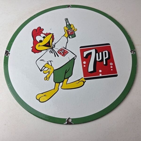Vintage 7 Up Soda Sign – Advertisement Porcelain Gas Service Station Ad Sign
