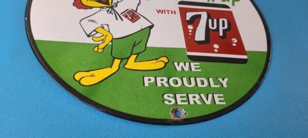 Vintage 7 Up Soda Sign – Advertisement Rooster Porcelain Gas Station Sign