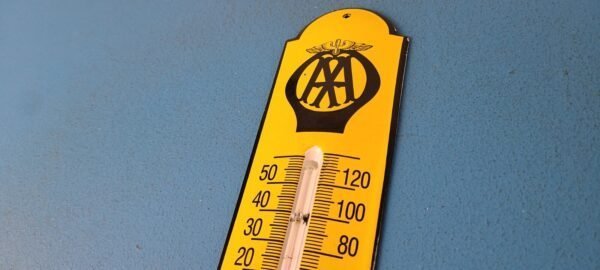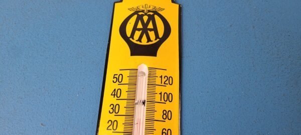 Vintage AAA Auto Insurance Sign – Service Gas Pump Sign on Porcelain Thermometer