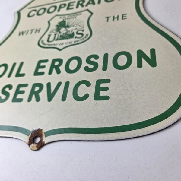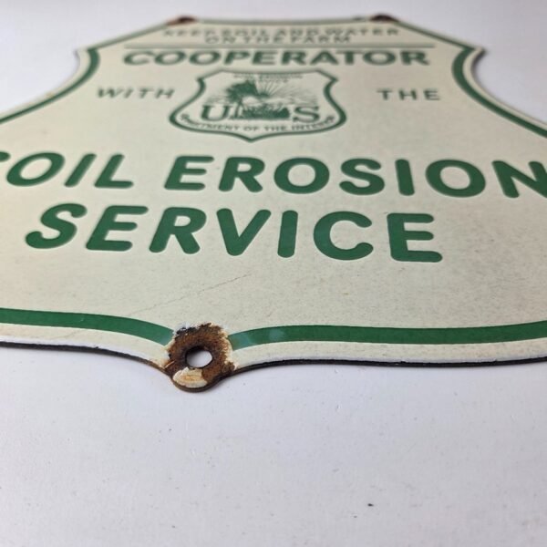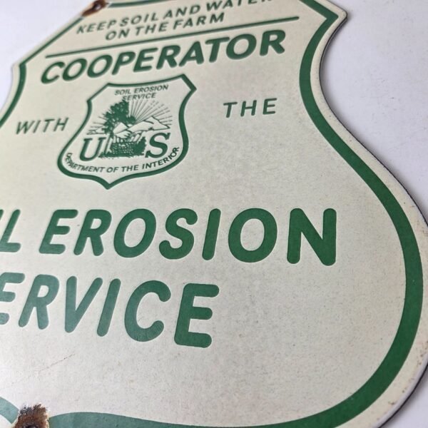 This vintage Soil Erosion Service porcelain sign is a must-have for any collector of forest service, gas and oil memorabilia.