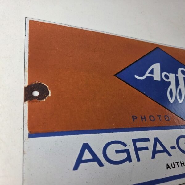 This vintage Agfa Gevaert porcelain sign is a must-have for any collector of photography, gas and oil memorabilia.