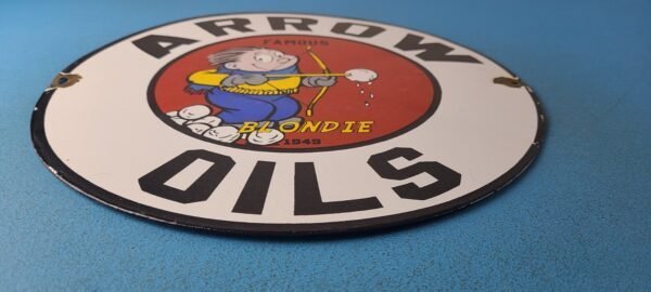 Vintage Arrow Oils Porcelain Sign.