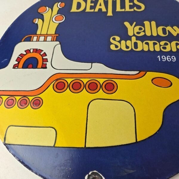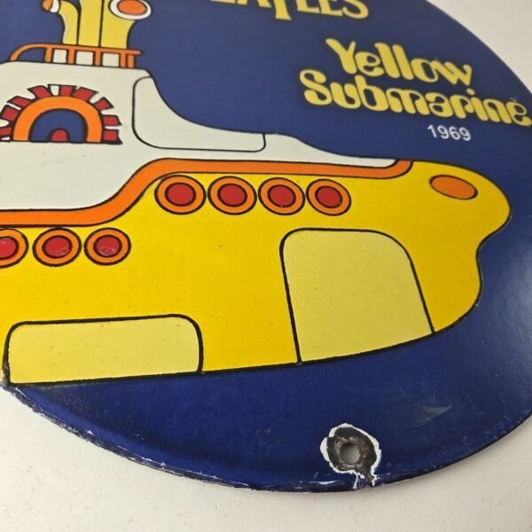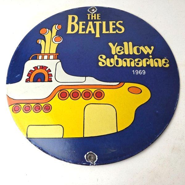 Vintage Beatles Yellow Submarine Porcelain Sign – 1969 Submarine Sign