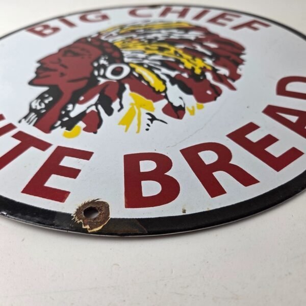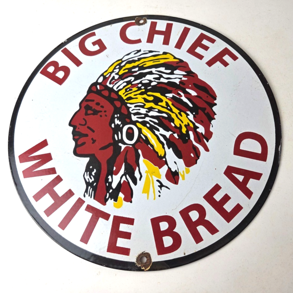 Vintage Big Chief Bread Sign – White Bread Grocery Store Gas Pump Porcelain Sign