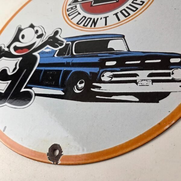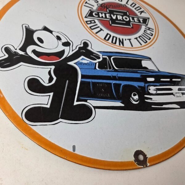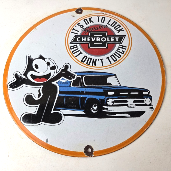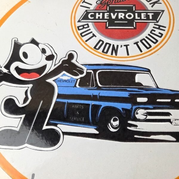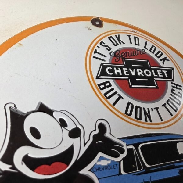 Vintage Chevrolet Sign – Felix Dont Touch Automobile Gas Pump Porcelain Sign