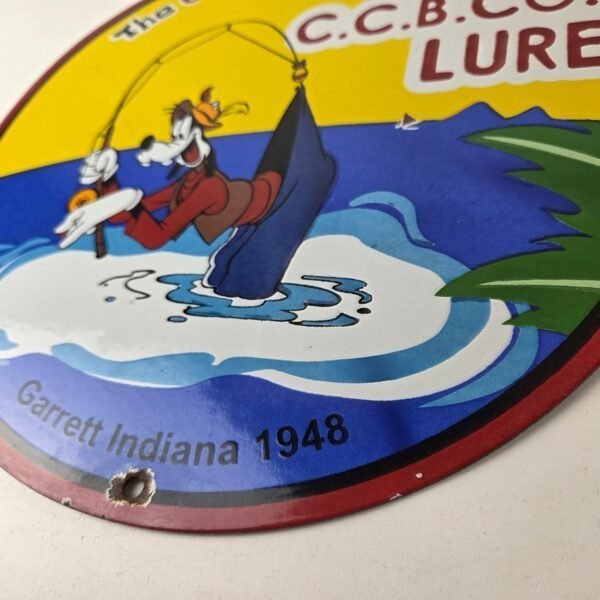 Vintage Chub Bait Caster Lures Sign – Cabin Fishing Porcelain Gas Pump Sign