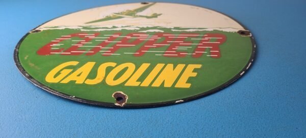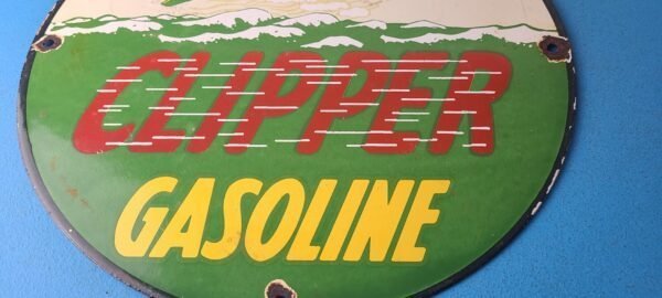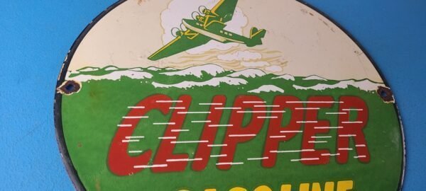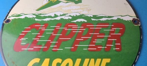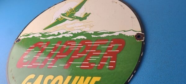 Vintage Clipper Gasoline Sign – Old Airplane Gas Pump Porcelain Sign