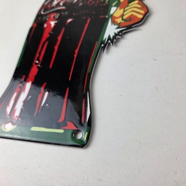 This vintage Coca Cola porcelain sign features a striking design of Coca Cola boy with the glass bottle and is made of porcelain material. It is perfect for display in a garage, shop, or man cave. The sign measures 11 3/4″ tall by 7″ across and is in excellent condition, with no major chips or cracks.