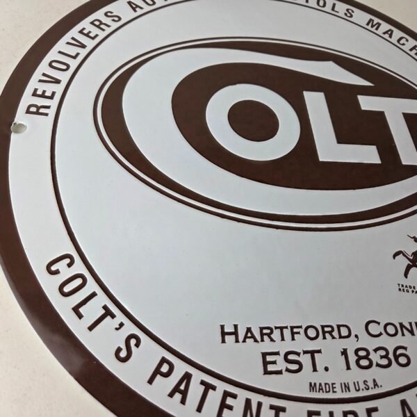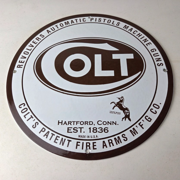 - Vintage Colt Firearms porcelain sign.