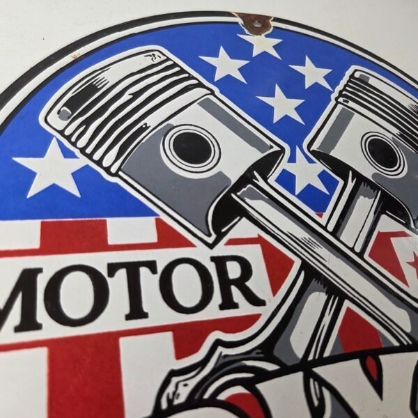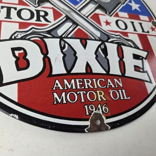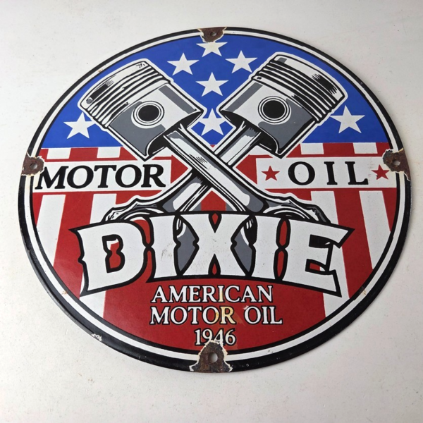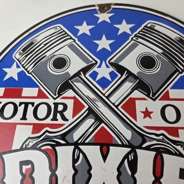 Vintage Dixie Motor Oil Sign – American Flags Gas Pump Service Porcelain Sign