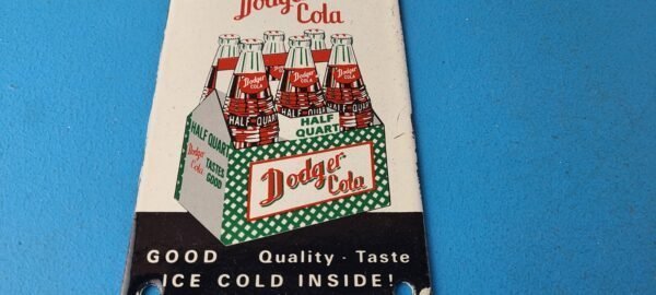 Vintage Dodger Cola Porcelain Sign – Bottles 6 Pack Beverage Drink Cola Gas Sign