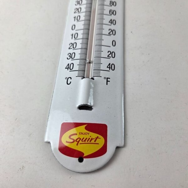 Vintage Drink Squirt Sign – Soda Pop Gas Ad Sign on Porcelain Thermometer