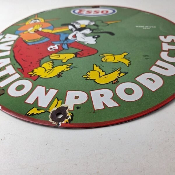Vintage Esso Gasoline Sign – Goofy Aviation Service Station Porcelain Gas Sign
