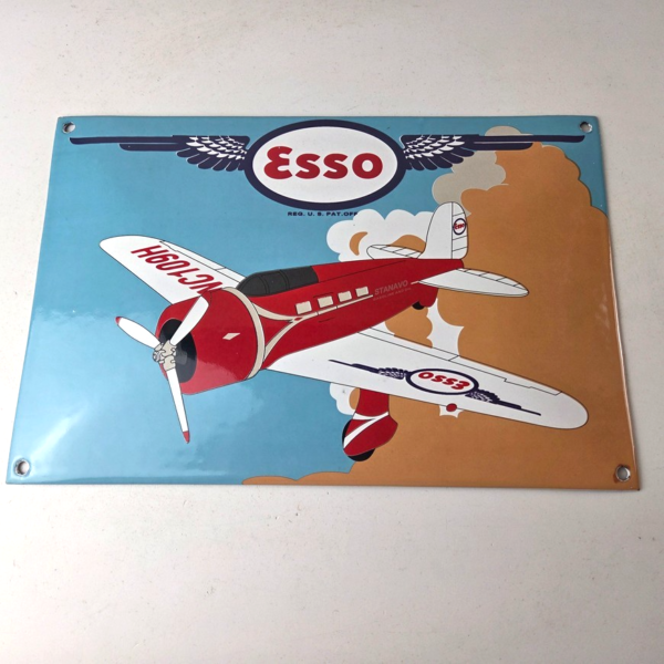 Vintage Esso Gasoline Sign – Porcelain Gas Airplane Aviation Station Pump Sign