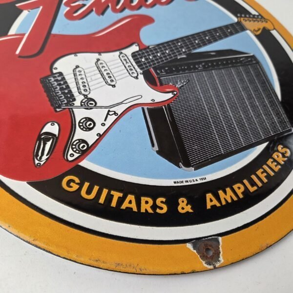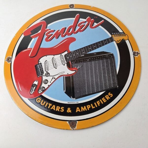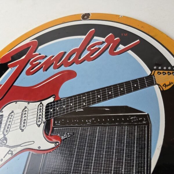 Vintage Fender Sign – Music Guitars Amplifiers Porcelain Advertisement Sign