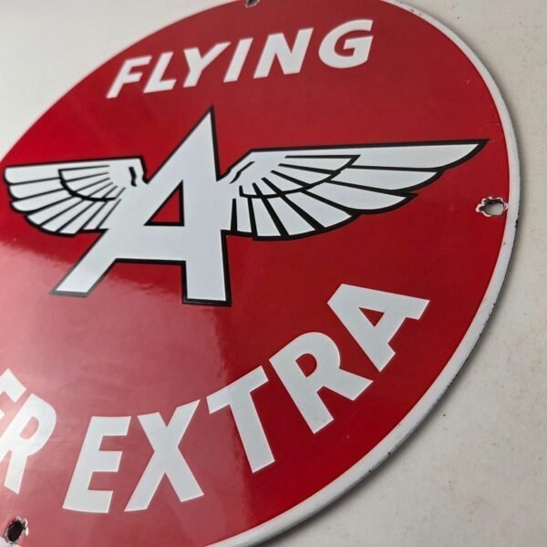 Vintage Flying A Gasoline Sign – Super Extra Aviation Gas Pump Porcelain Sign