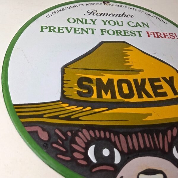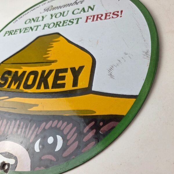 Vintage Forest Service Gas Pump Sign – Smokey the Bear Porcelain Sign