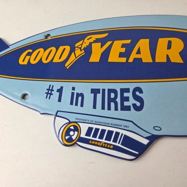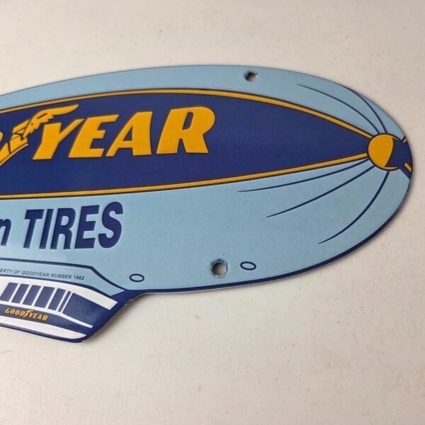 Vintage Goodyear Blimp Sign – Porcelain Gas Service Tires Advertising Sign