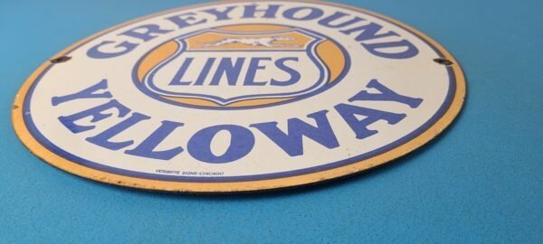 Vintage Greyhound Yelloway Porcelain – Bus Line Company News Gas Pump Sign