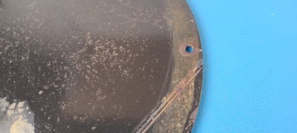 This vintage porcelain sign features the iconic Greyhound Bus Lines Yelloway graphic. Measuring 12 inches, this round sign is perfect for collectors of gas and oil memorabilia. The sign comes in black and blue colors, making it a great addition to any themed collection. The sign is made of high-quality materials and is in great condition, with no noticeable wear or tear. This sign is sure to make a statement in any collection or as a unique piece of decor. Add this piece to your collection today!
