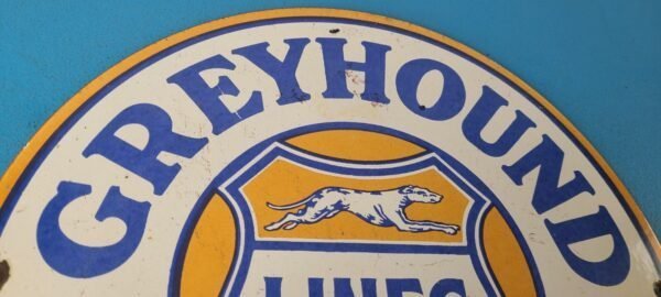 Vintage Greyhound Bus Lines Porcelain Sign.