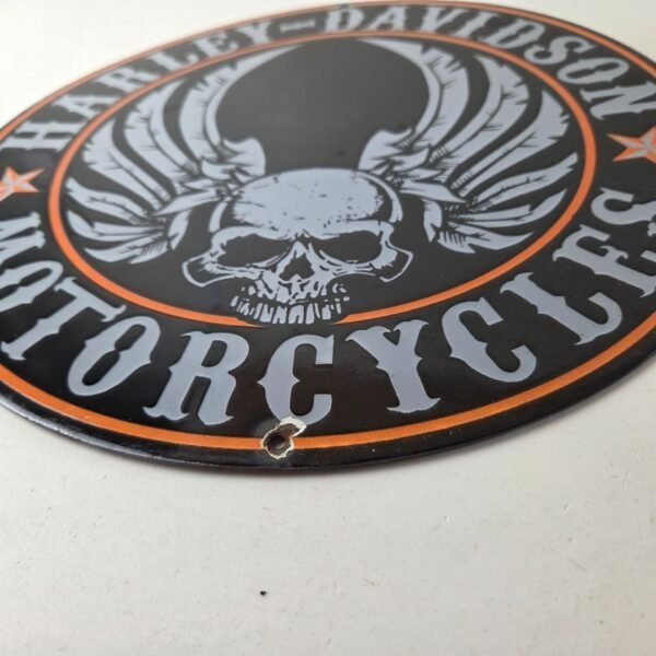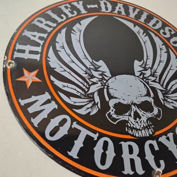 Vintage Harley Davidson Motorcycle Sign – Skull & Wings Gas Pump Porcelain Sign