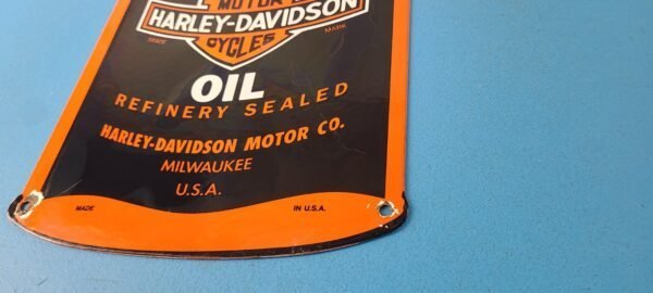 Vintage Harley Davidson Motorcycles Porcelain Motor Oil Quart Can Gas Pump Sign