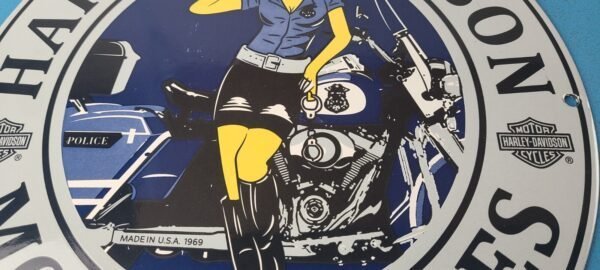 Vintage Harley Davidson Motorcycles Sign – Police Biker Gas Girl Porcelain Sign