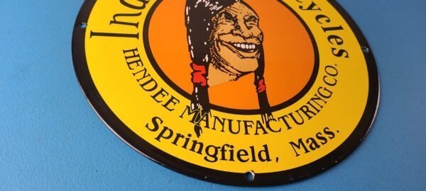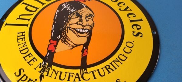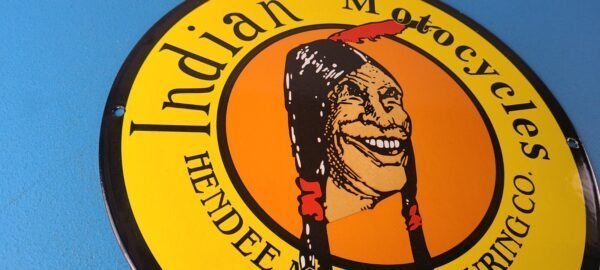 Vintage Indian Motorcycles Sign – Hendee Sales Parts Service Porcelain Gas Sign