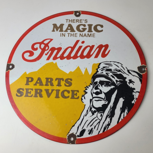 Vintage Indian Motorcycles Sign – Magic Chief Parts Service Porcelain Gas Sign