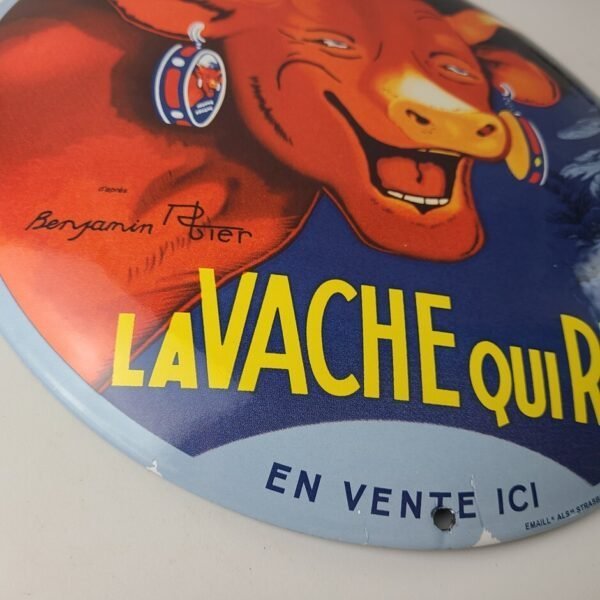 Vintage LaVache Qui Rit Porcelain Sign – Dairy Cow Milk Service Gas Pump Sign