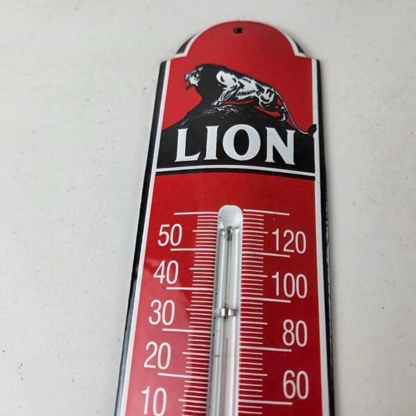 Vintage Lion Gas Sign – Service Station Pump Ad Sign on Porcelain Thermometer