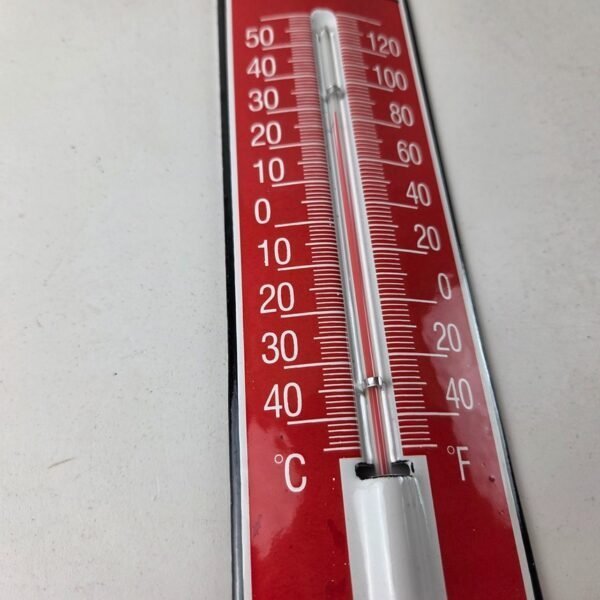 This vintage Lion porcelain thermometer measures 11 3/4″ x 2 1/2″. This thermometer is a great addition to any collection. It features the iconic Lion Gasoline Gas Station logo and has vibrant red colors with excellent gloss.