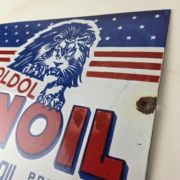 Vintage Lion Oil Sign – Service Station Gas Pump Advertising Porcelain Sign