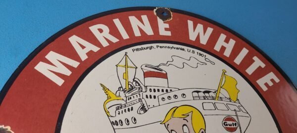 Vintage Marine White Gasoline Sign – Richie Rich Porcelain Auto Gas Pump Sign
