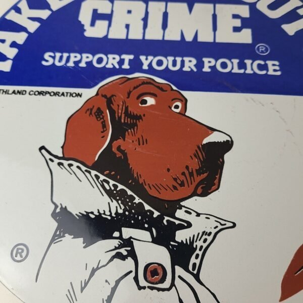 Vintage McGruff Crime Dog Sign – Porcelain Support Police Gas Pump Plate Sign