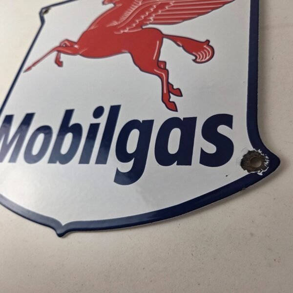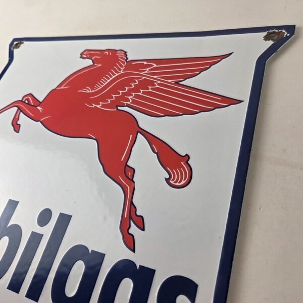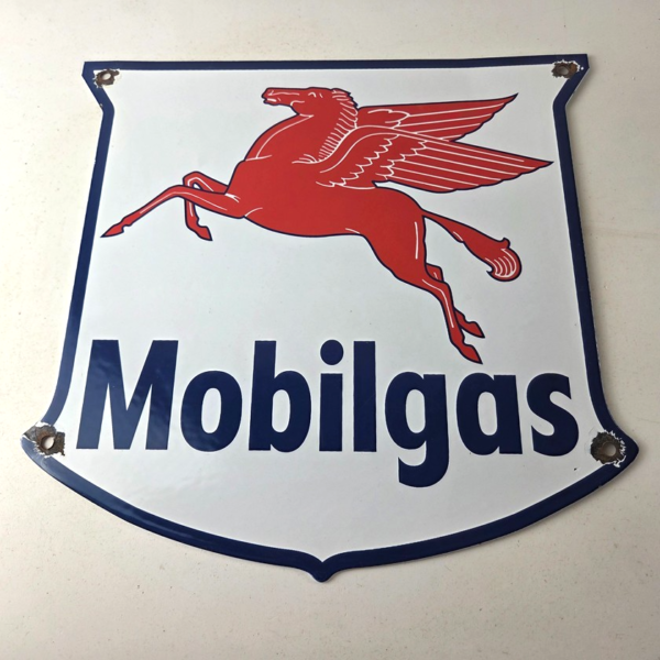 Vintage Mobilgas Sign – Porcelain Mobil Gasoline Pegasus Shield Gas Pump Sign