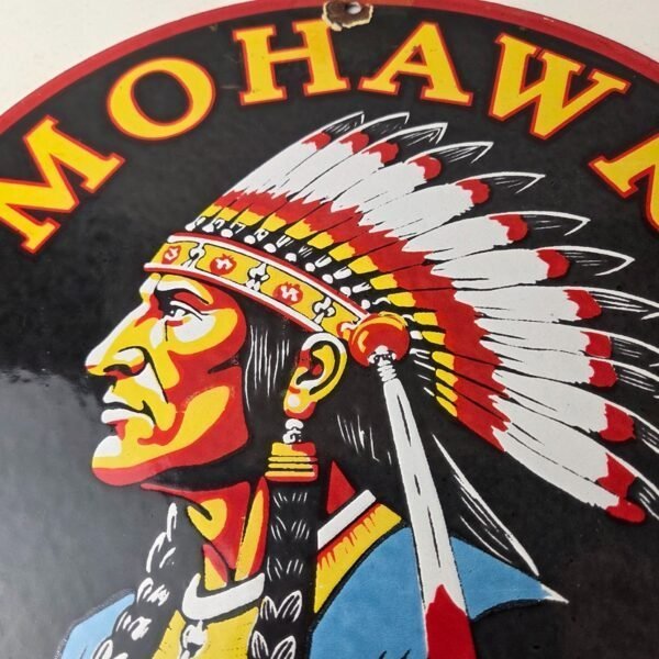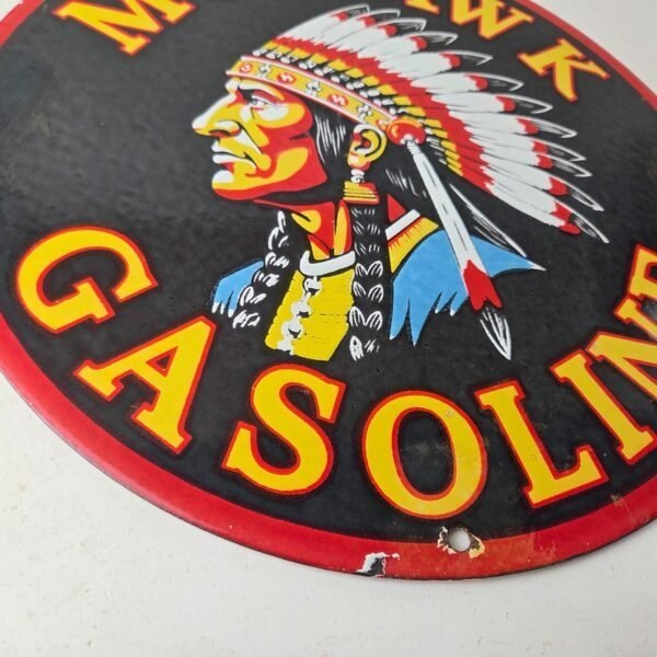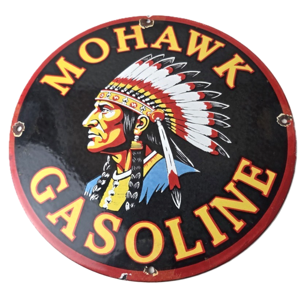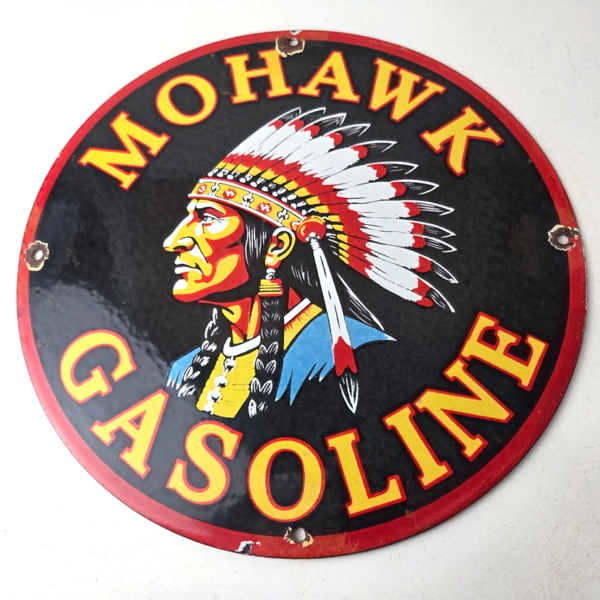 Vintage Mohawk Gasoline Sign – Gas Porcelain Service Native American Indian Sign