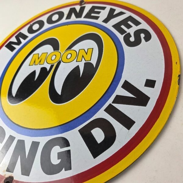 Vintage Moon Eyes Sign – Speed Drag Race Division Porcelain Gas Pump Sign
