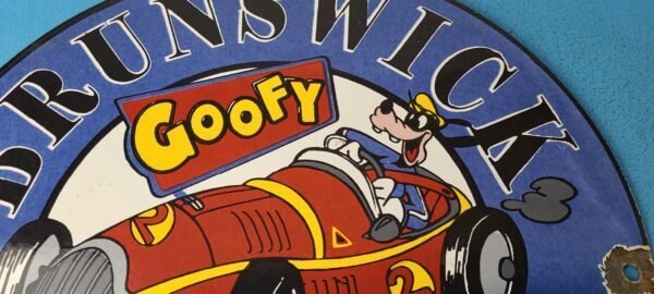Featuring the iconic Brunswick Motor Oil Pump Plate design, this sign is a true conversation starter. Measuring 12 inches, it is the perfect size for display in a garage, man cave, or game room. This sign is a testament to the quality and craftsmanship of porcelain advertising. It features the Brunswick Oil / Gasoline brand and is perfect for those who appreciate the nostalgia of the gas and oil industry. This porcelain gas sign is unique and would make a great addition to any collection.