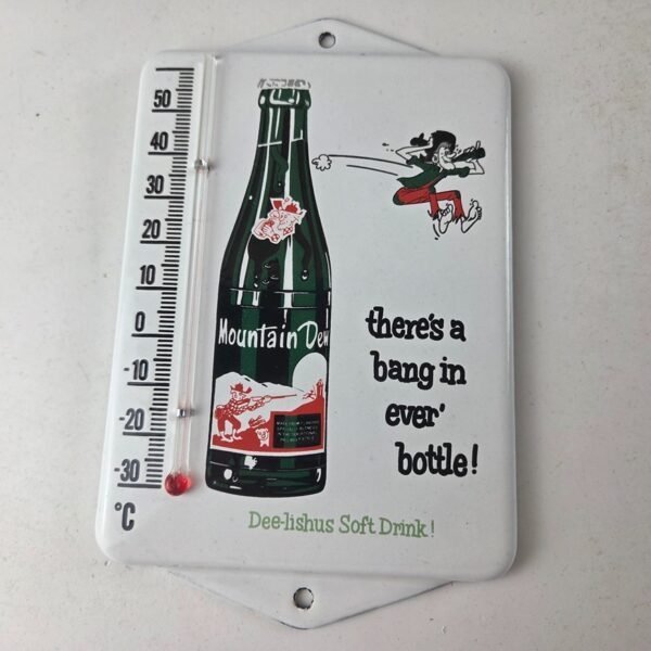 - Vintage Mountain Dew porcelain thermometer.