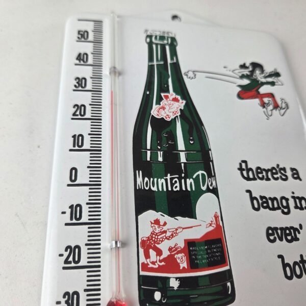 Vintage Mountain Dew Porcelain Sign – Soda Gas Pump Ad Thermometer Sign