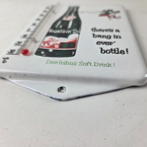 Vintage Mountain Dew Porcelain Thermometer sign.